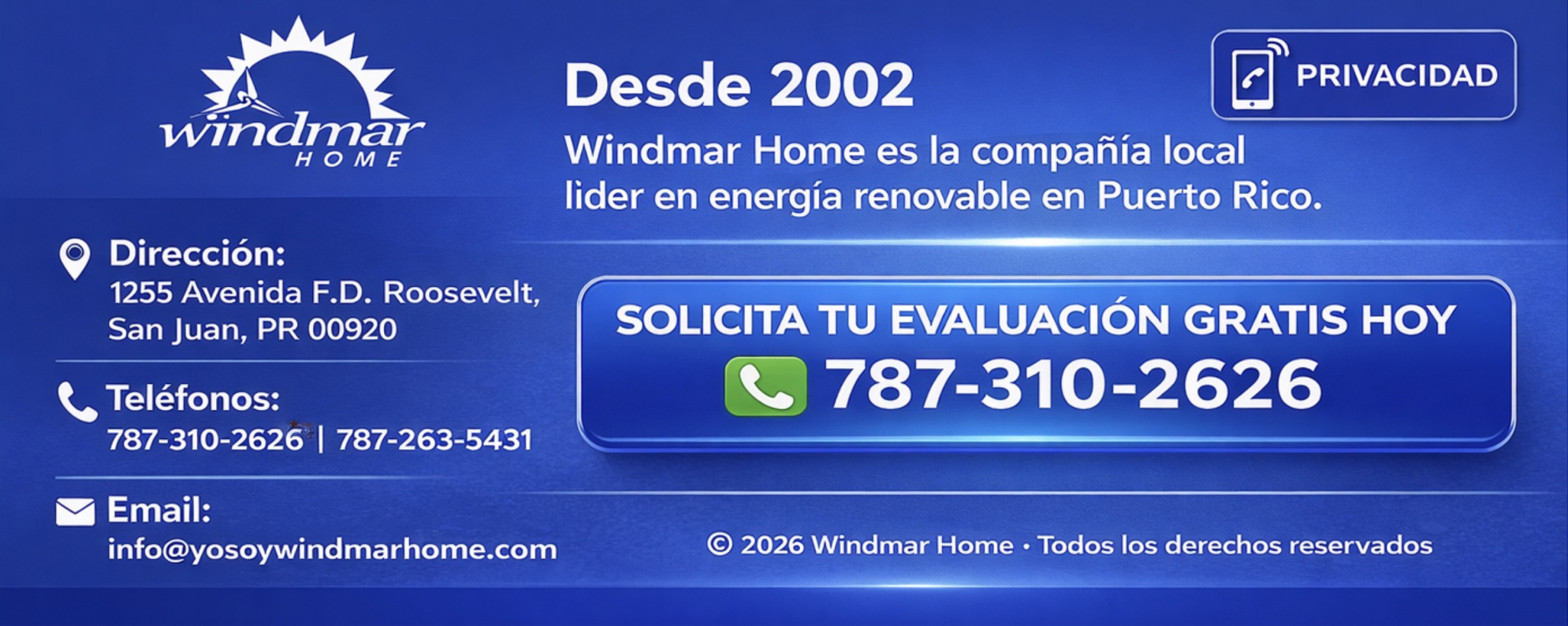 Establecido en el 2002, WindMar Home es la compañía local más grande y con más experiencia en la industria de energía renovable.